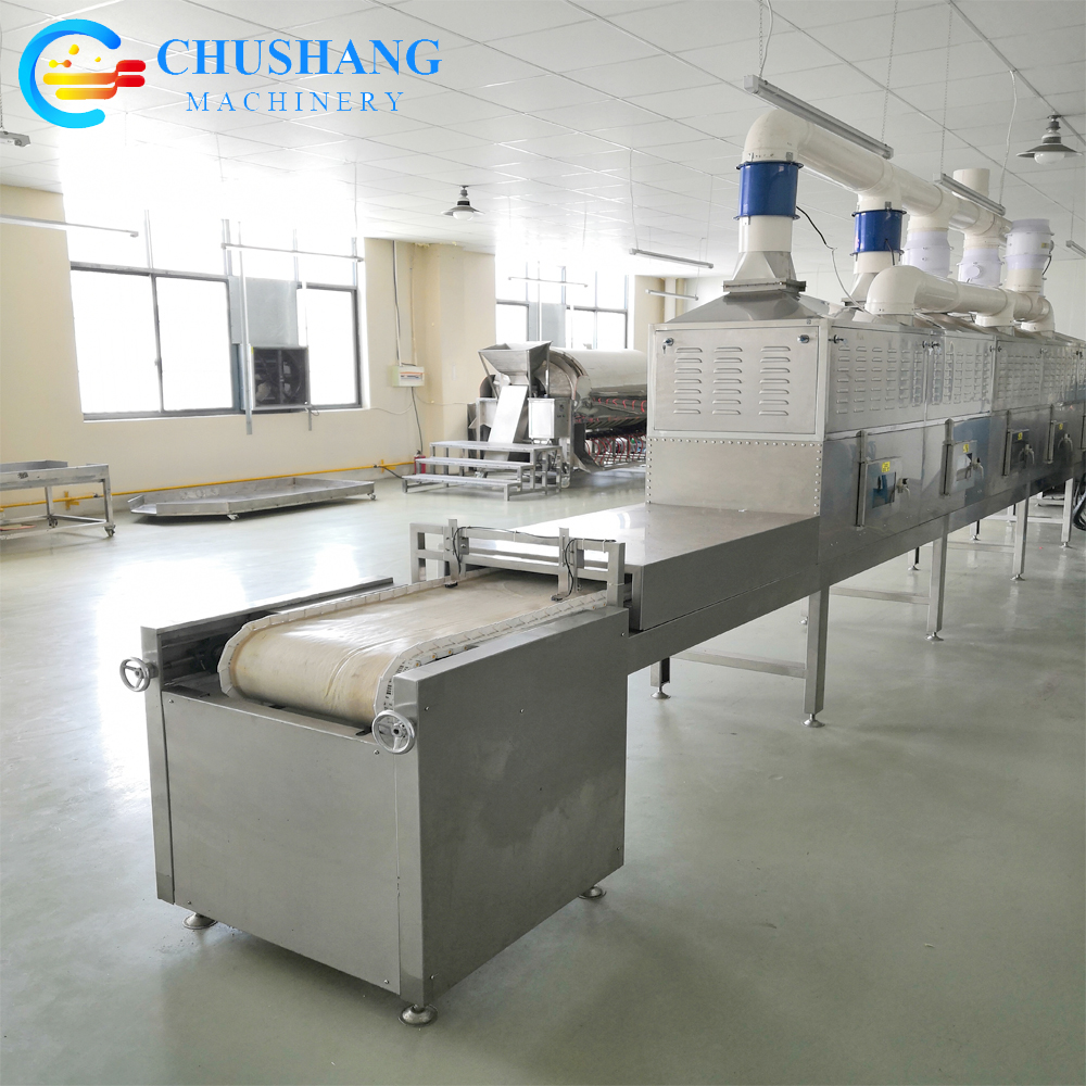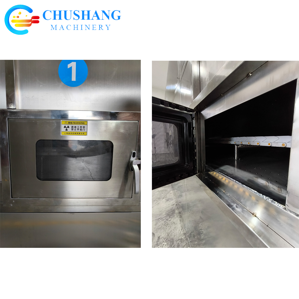This is a tunnel microwave drying and sterilization machine, which has the advantages of overall uniformity, energy saving, high efficiency and environmental friendliness. The machine adopts PLC automatic control system, which is easy to operate. The body, conveyor belt and electrical components are all made of high-quality materials. At the same time, the equipment size can be customized according to the customer's demands. This machine can be widely used in various fields such as food, pharmaceutical, textile, chemical, building materials, wood and latex products. Welcome customers to consult and negotiate.