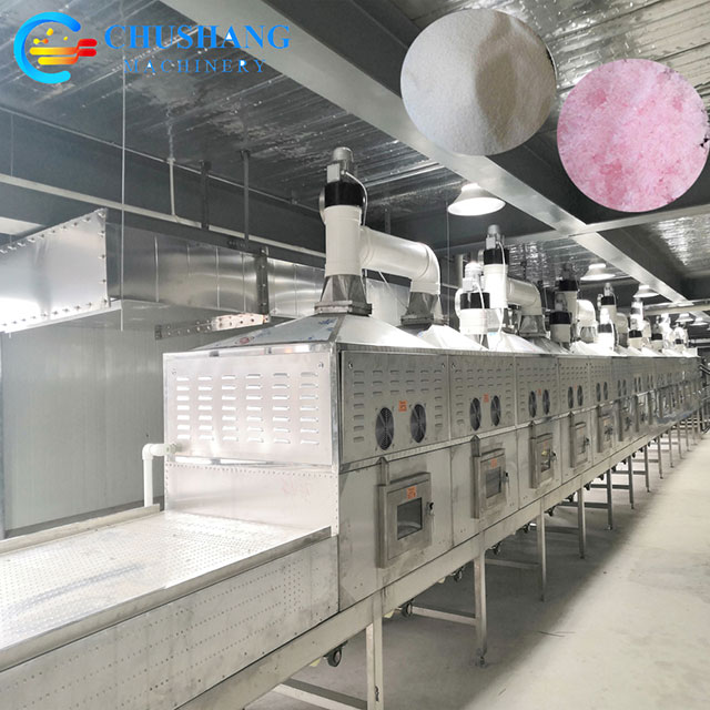 This is a tunnel microwave chemicals drying machine, which has the advantages of overall uniformity, energy saving, high efficiency and environmental friendliness. The machine adopts PLC automatic control system, which is easy to operate. The body, conveyor belt and electrical components are all made of high-quality materials. At the same time, the equipment size can be customized according to the customer's demands. This equipment can be widely used in chemical Field,as heating, drying, decomposition and extraction, etc.